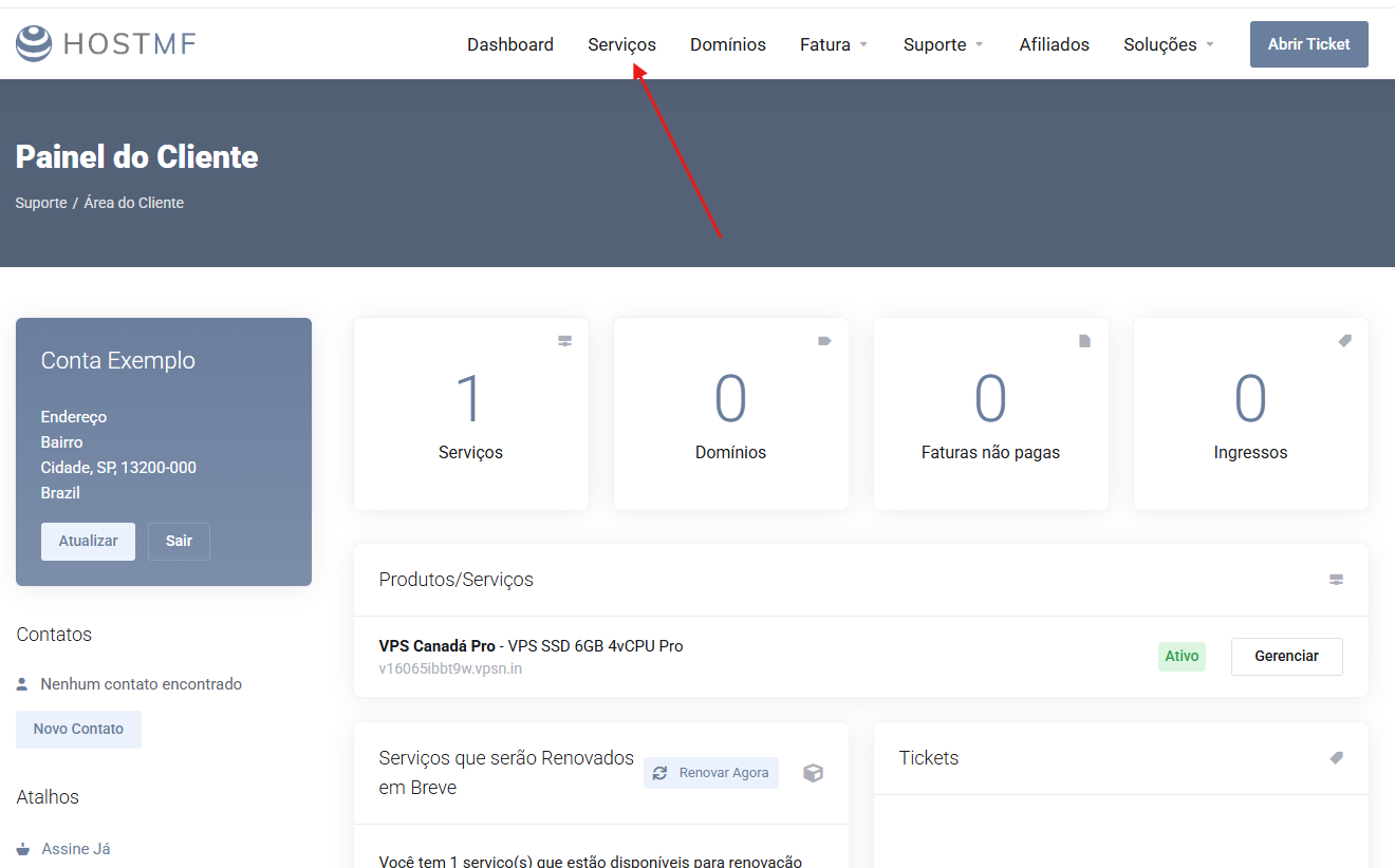 - Área do Cliente -> Serviços, como no exemplo abaixo: